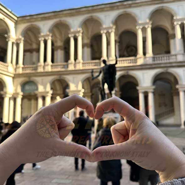 Look for clues and hints all around the beautiful Palazzo Brera, admire the masterpieces of Italian artists, including the works by Raphael, Caravaggio, Modigliani and Leonardo da Vinci, and the paintings of international artists, such as Picasso, Rubens and the stunning “Kiss” by Francisco Hayez.